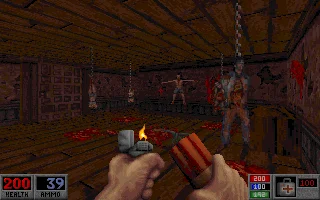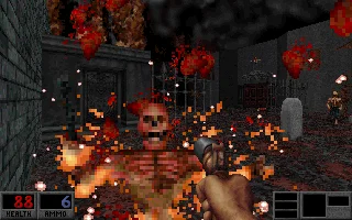Blood is a fast-paced first-person shooter released for MS-DOS in 1997 by Monolith Productions. Built on the enhanced Build engine, the game stands out for its fluid movement, interactive environments, and atmospheric level design. Players step into the role of Caleb, a gunslinger-turned-undead antihero seeking revenge against the dark god Tchernobog.The game is known for its distinctive blend of gothic horror, dark humor, and pop-culture references. Its arsenal includes both traditional weapons and creatively macabre tools like the voodoo doll and aerosol can flamethrower, giving combat a uniquely chaotic and satisfying feel. Enemies range from cultists and zombies to grotesque supernatural monstrosities.