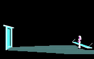 Karateka (1984) is a classic side-scrolling martial arts game developed by Jordan Mechner and published by Brøderbund for MS-DOS and other platforms. Renowned for its cinematic presentation and fluid rotoscoped animation, Karateka was one of the first games to blend storytelling with action, setting new standards for character movement and atmosphere in the early video game era.The player takes on the role of a lone karate master on a quest to rescue Princess Mariko from the evil warlord Akuma. Progressing through Akuma’s fortress, the player must face a series of skilled opponents in one-on-one combat, where timing, precision, and discipline are key to survival. Each encounter builds tension, enhanced by the game’s smooth animations and evocative music.