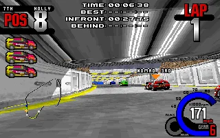 Whiplash (released as Fatal Racing in some regions) is a high-speed, futuristic racing game developed by Interplay Productions for MS-DOS in 1996. The game focuses on aggressive, stunt-heavy driving across wild, roller-coaster-like tracks filled with loops, twists, and steep drops. Its core appeal lies in blending arcade racing with chaotic vehicular combat, making every race unpredictable and thrilling.Players choose from various teams and drivers, each with unique characteristics and performance stats. The cars can collide, spin out, and even explode, turning races into spectacular crashes and dramatic comebacks. The physics are intentionally exaggerated, amplifying the gameβs wild, over-the-top personality.
